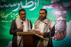 رئیس انجمن شاعران یمن با اشاره به اینکه ما در راه امام حسین علیه السلام و امام سجاد علیه السلام و در تقوا و ایمان و خیزش انقلابی با هم هستیم، خطاب به مسلمانان بیان کرد : برای آزادی فلسطین همه مسلمانان برخیزید و باید متحد و منسجم بود تا پرچمهای بزرگ انقلاب را در دست بگیریم.